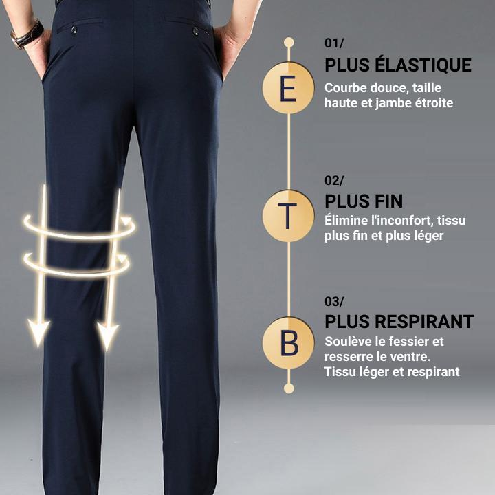 Un pantalon classique extrêmement extensible et à devant plat, pour garantir un ajustement parfait.