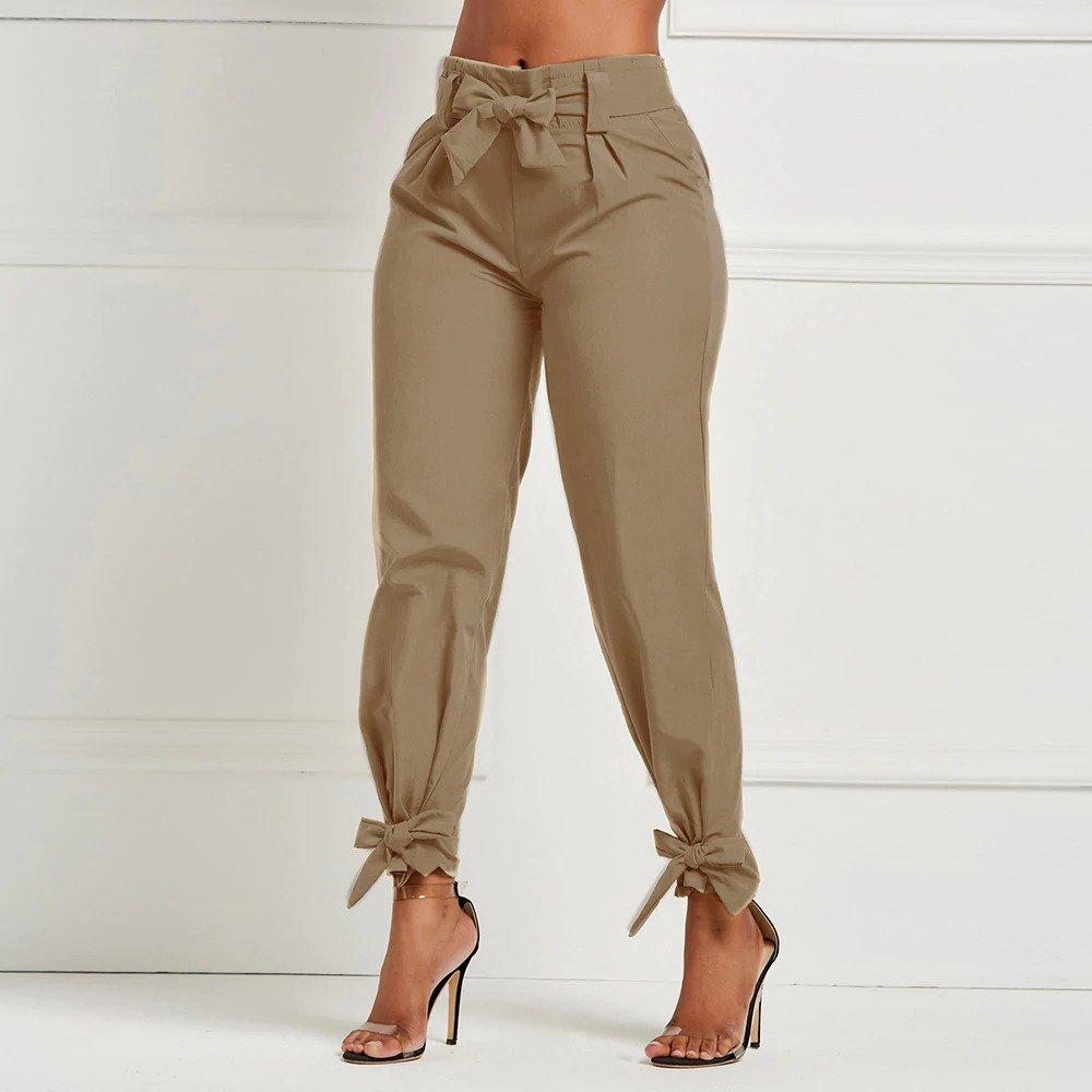 Pantalons taille haute Décontracté Femme Nœud Papillon
