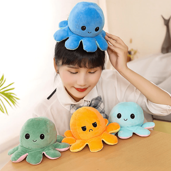 Faites savoir aux autres, comment vous vous sentez aujourd’hui grâce à votre nouvelle peluche pieuvre réversible super cute !