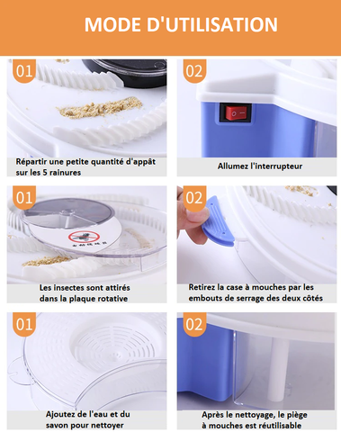 Convient pour une utilisation à l’intérieur ou à l’extérieur. Parfait pour les chambres d’hôtel, les restaurants, les supermarchés, etc. Ce produit peut être placé dans un endroit où les mouches sont nombreuses et envahissantes. Vous pouvez l’utiliser avec un appât liquide comme le miel, pour attirer les mouches et les moustiques.