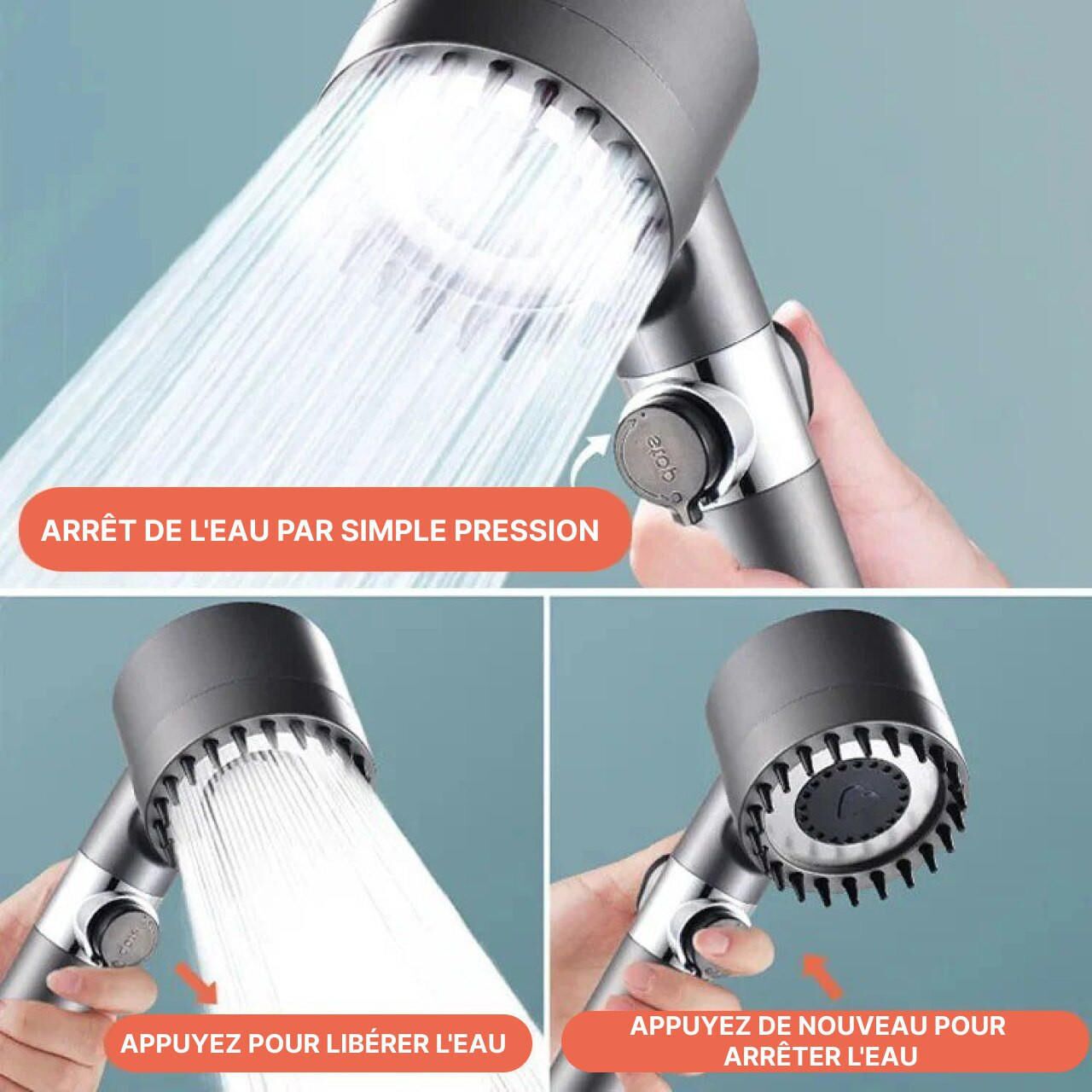 Le Pommeau De Douche Haute Pression 4-en-1 offre une expérience de bain unique. Il dispose de trois réglages de vitesse :