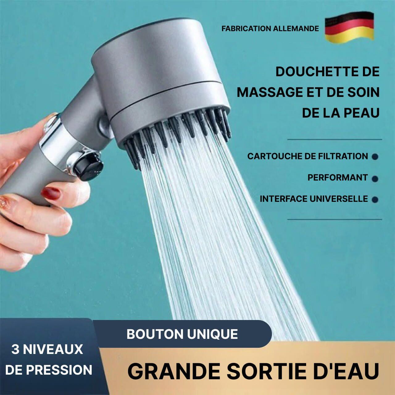 - Technologie de Pressurisation: Les pommeaux de douche économiques utilisent une technologie de pressurisation spéciale qui augmente la vitesse de l’eau, offrant une sensation de haute pression tout en utilisant moins d’eau. Cela permet une économie significative d’eau et d’énergie, car moins d’eau chaude est nécessaire.