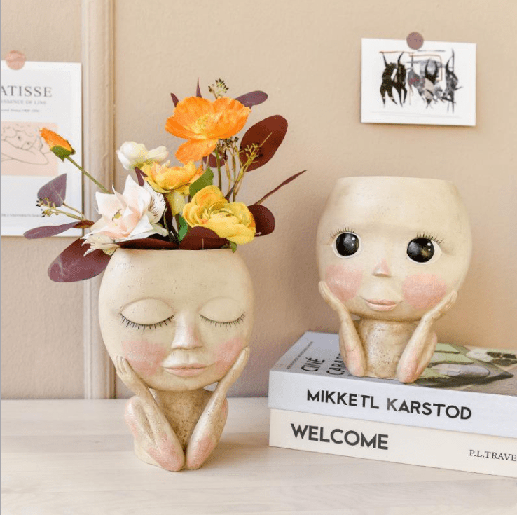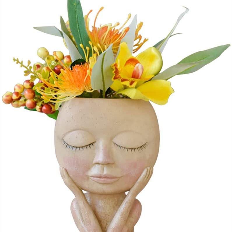 - La tête sert de support pour le sol, vous pouvez l’utiliser pour planter des mini plantes vertes, telles que des herbes, des plantes succulentes ou des cactus.