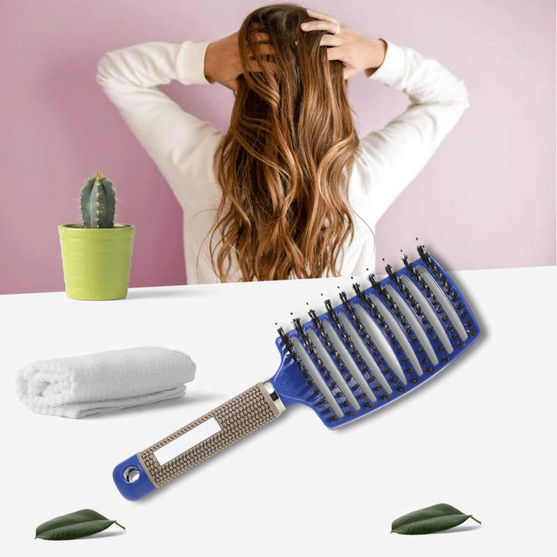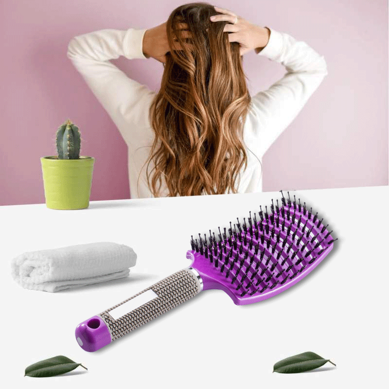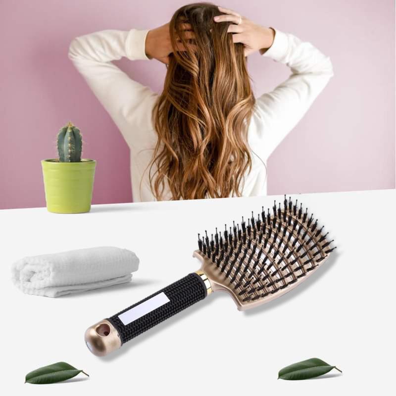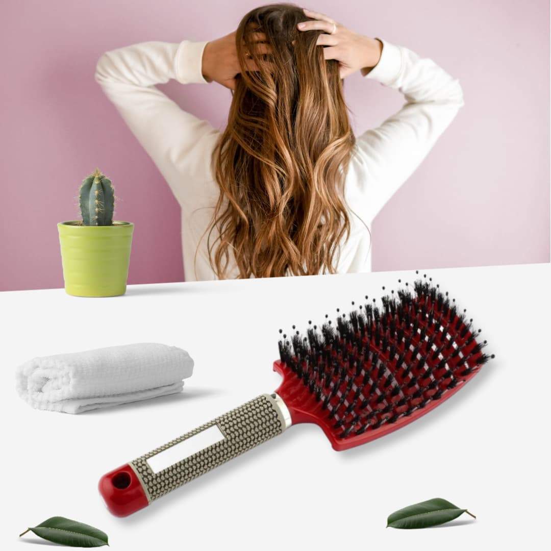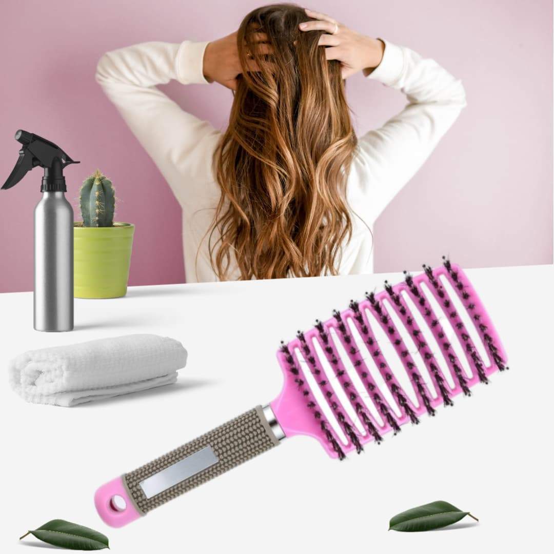 C’est pourquoi, nous avons conçu notre brosse à cheveux  grâce à sa conception innovante combinant des poils de sanglier et des pointes en nylon qui glissent doucement sur les cheveux emmêlés sans l’inconfort des brosses traditionnelles.