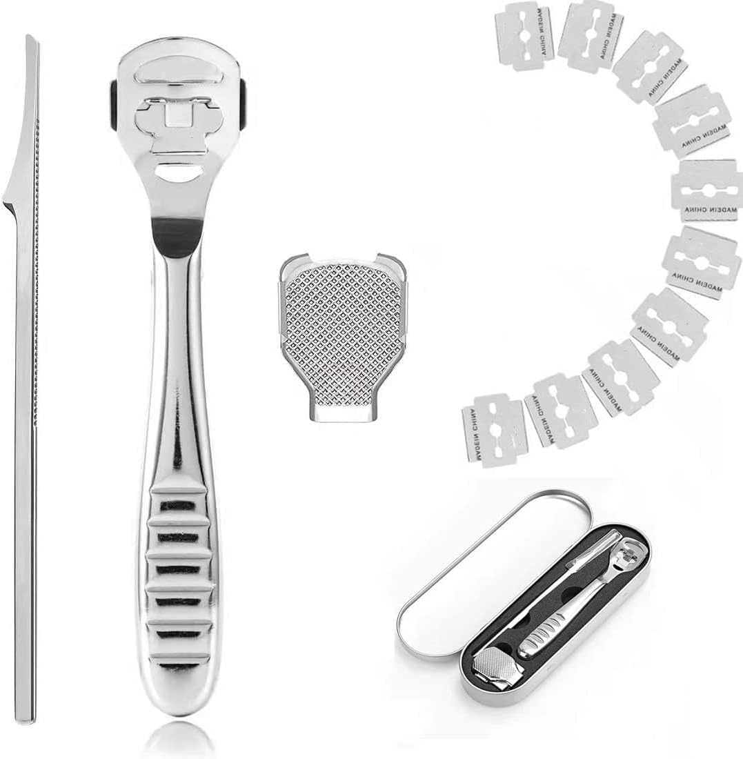 - Contenu du kit : 2 rasoirs pour pieds, 1 coupe-cors, 1 couteau multifonction, 10 lames de rechange
