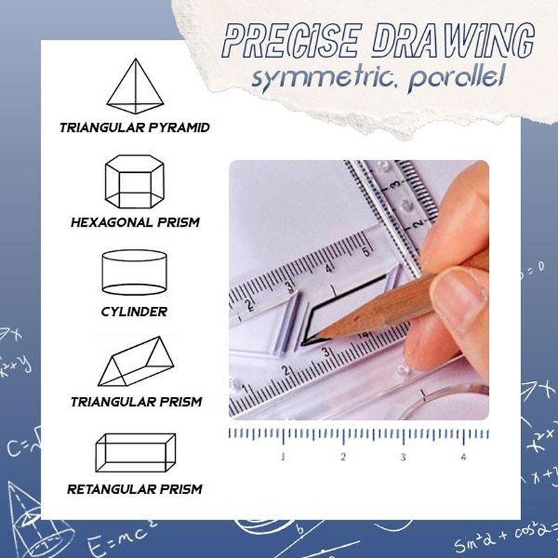 Une règle tout-en-un qui fournit 14 figures géométriques de différentes tailles et formes ! Comprend une échelle de rapporteur, une bobine, une fente de dessin de fonction, une bobine X, un trou circulaire, un trou polygonal, un cercle, un parallélogramme et plus encore. Il vous permet de créer des traits cohérents, des conceptions artistiques et des mesures précises sans avoir besoin de divers outils de dessin. De plus, la règle géométrique est rotative et coulissante pour que vous puissiez la déplacer facilement tout en travaillant.