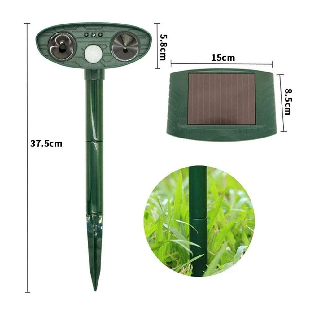 Le produit utilise la technologie Infrarouge ultrasons solaire électronique sonore pour arrêter sans nuire une large gamme d’animaux comme les chiens, les chats, les oiseaux, les pigeons, les renards, les écureuils, les cerfs, les rats, souris, taupe, rat, souris, rongeurs, serpent, cafard, araignée, oiseaux, anti insecte, mouche et moustique etc aura pour effet de dissuasion et répulsif.