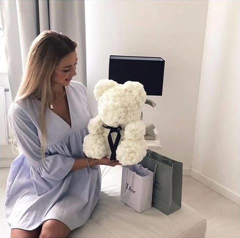 Offrez ce magnifique ours en peluche à votre petite amie, votre fiancée, votre femme ou votre mère! C’est un ours en peluche fait de roses synthétiques douces.