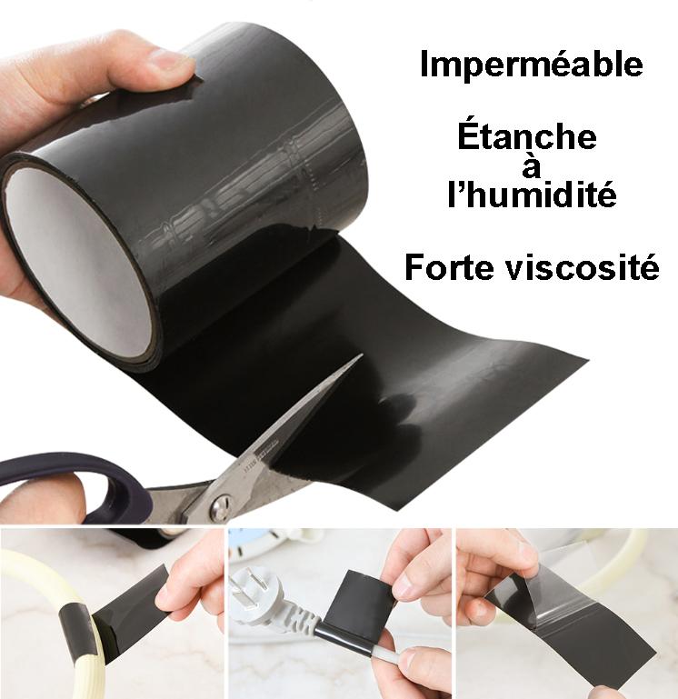 Ce ruban caoutchouté est une bande imperméable extrêmement durable. Elle scelle l’eau, l’air et l’humidité pour créer un lien extrêmement solide capable de réparer pratiquement tout. C’est un ruban adhésif caoutchouté super-hydrophobe qui fonctionne même dans l’eau. Il est fabriqué à partir d’un matériau caoutchouté suffisamment épais pour être fiable. Il est aussi suffisamment souple pour s’adapter à toutes les courbes et tous les faux plis.