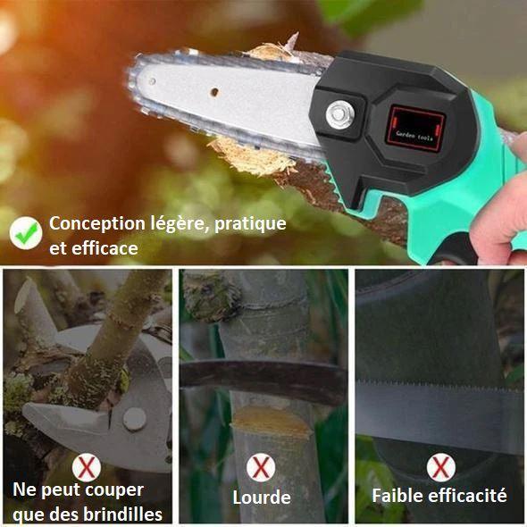 Scie à Chaîne Electrique Rechargeable, légère et transportable. 6 heures d’autonomie, ne cause aucun dommage à l’écorce.