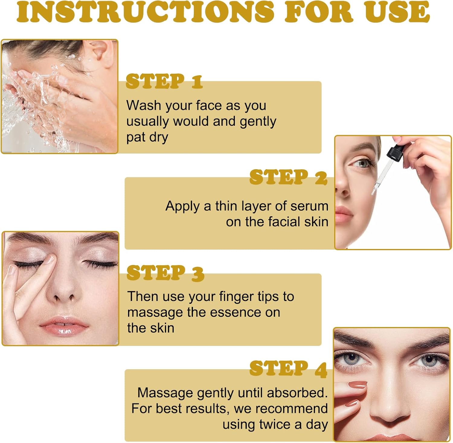 L’application du sérum est simple et rapide, idéale pour une routine quotidienne. Commencez par nettoyer soigneusement votre visage et votre cou pour éliminer les impuretés. Appliquez ensuite une petite quantité de sérum sur votre peau propre. Massez doucement en effectuant des mouvements circulaires jusqu’à ce que le produit soit complètement absorbé. Pour de meilleurs résultats, utilisez le sérum matin et soir. Vous constaterez des améliorations visibles dès les premières semaines d’utilisation.