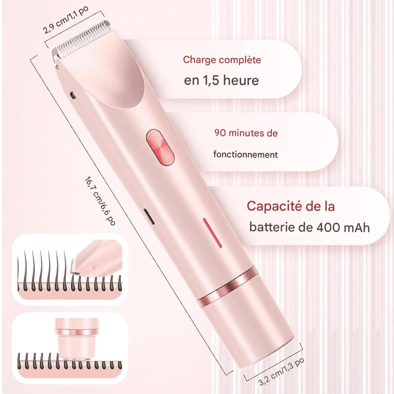 Ce n’est pas juste un rasoir lambda. Il fait double emploi : à la fois coupe précise et rasage au plus près. Que tu veuilles juste entretenir ou tout enlever, il s’adapte. Aisselles, maillot, jambes… peu importe la zone, il fait le job sans broncher. Et pas besoin de jongler avec plusieurs appareils, c’est tout en un. Pratique, non ?