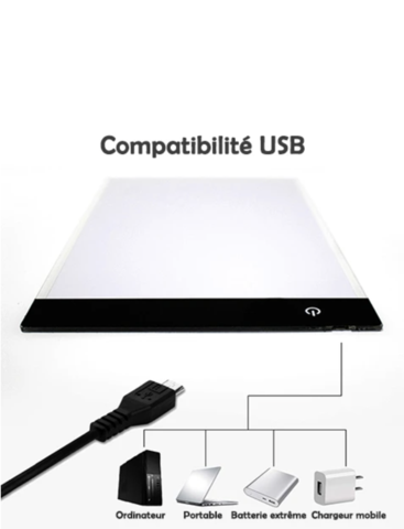 La tablette à dessin peut être connectée à un chargeur de téléphone portable, une batterie externe ou un ordinateur. Comprend un câble USB.