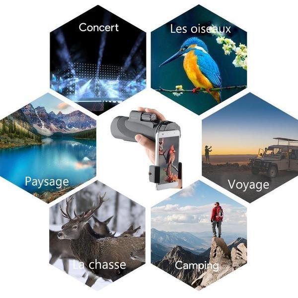 Mini télescope de poche monoculaire puissant, agit comme une longue vue et jumelles puissantes sur votre téléphone portable.