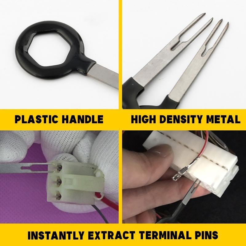 Il s’agit d’un kit d’outils universel avec différentes clés à broches (broches simples, broches doubles et outils de moulage) pour toutes les bornes de connexion qui peuvent être utilisées pour les voitures, les motocyclettes, les autres appareils électroniques, etc.