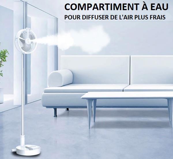 - Il est équipé d’un compartiment à eau. Vous pouvez utiliser la fonction d’humidification pour diffuser de l’air plus frais, et créer une sensation de fraîcheur optimale.