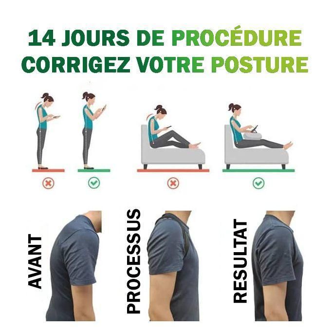 Pour de meilleurs résultats, commencez doucement  portez le correcteur 10–20 minutes par jour durant les premiers jours,puis augmentez la durée de 10 minutes chaque jour. Progressivement, vos muscles apprendront la bonne position et votre posture s’améliorera naturellement.